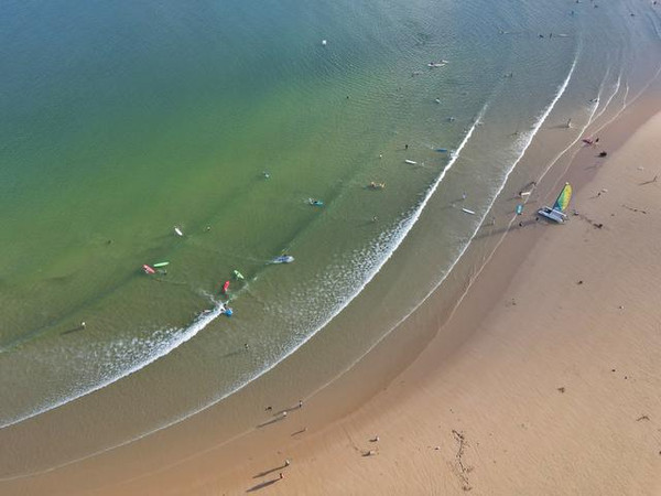 在皇后湾可以看到很多冲浪学习者,还有一些海上项目,这片海域属于内海,不同于海棠湾的波涛汹涌,这里平日里浪小且平静,很适合下海游玩。
