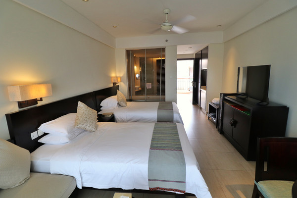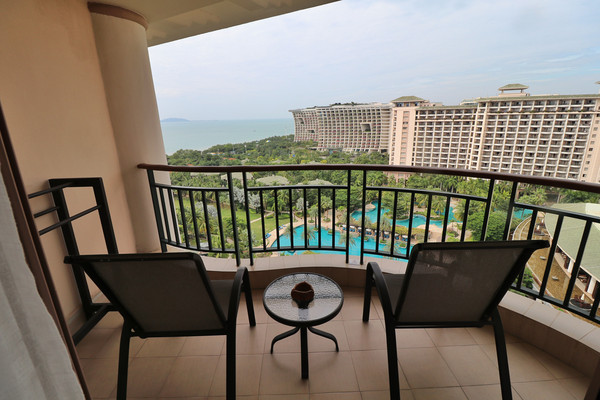 酒店客房都是一线海景,房间面积很大,整体的装修也是简约大气。站在阳台,可以望见不远处的大海,也可以把酒店的大泳池尽收眼底。