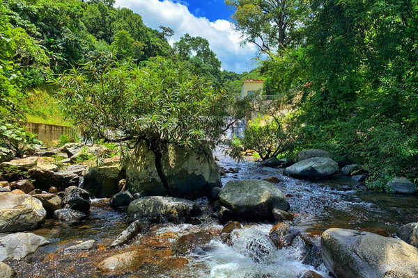 景区溪水潺潺,彩蝶飞舞,热带植物总类繁多,古树参天,藤萝密布,集中了五指山热带雨林和热带沟谷雨林的典型景观。可观赏到稀有名贵植物:如红花天料木、野生荔枝、野生茶树、热带树木屏状的板根、奇特的植物“绞杀现象”、“茎花现象”、“空中花篮”等热带雨林景观。站在景区观山点,正面眺望海拔1868米的海南第一封—五指山,巍巍耸立,五峰并列如撑天五指,在云海中时隐时现,近在咫尺,尽收眼底。