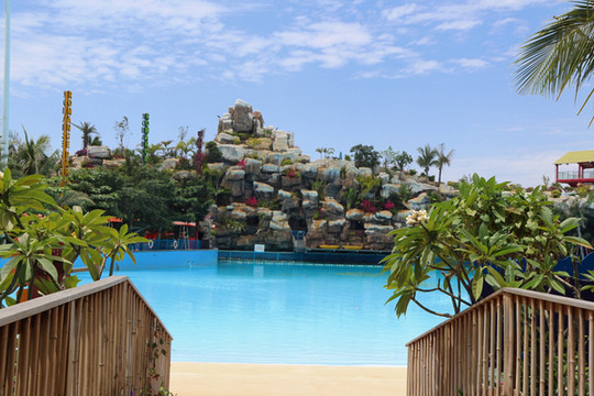酒店拥有4500平泳池,而且从酒店可以直接走地下通道直达对面的海滩哦。