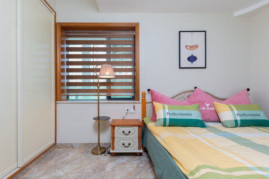 移步来到房间,慵懒的大床静静躺在一旁,精致的落地灯将整个空间点亮,房间面积虽然不大,但生活设施却一应俱全,住起来轻松方便。