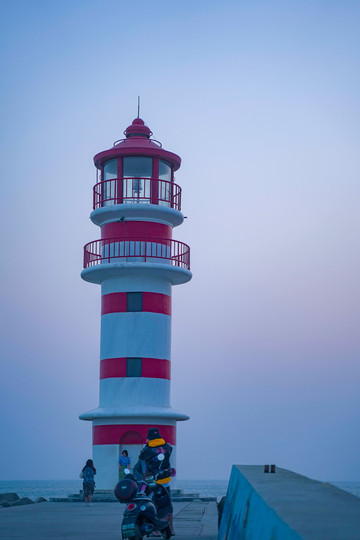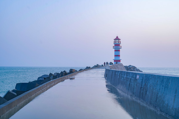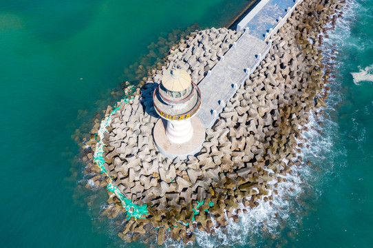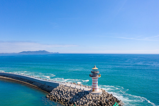 海堤尽头,灯塔静静矗立着,塔身在风雨的洗礼下略显褪色,灯塔设有观景台,凭栏远眺,碧海蓝天尽收眼底,煞是好看。