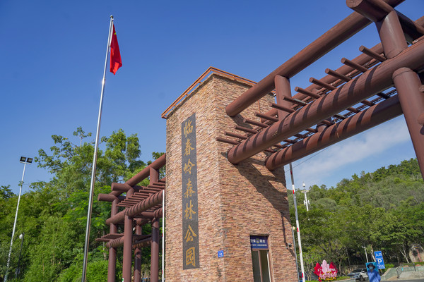 走进公园,宛若步入天然氧吧,空气清新,随处可见郁郁葱葱的绿植,让人忍不住大口呼吸。入口的门楼设计别出心裁,深浅拼错的石墙上,“临春岭森林公园”几字历历在目,黑底金字,尽显文化底蕴。一侧的木头造型十分吸睛,与四周树木相互映衬,清新中透露出几分古朴。