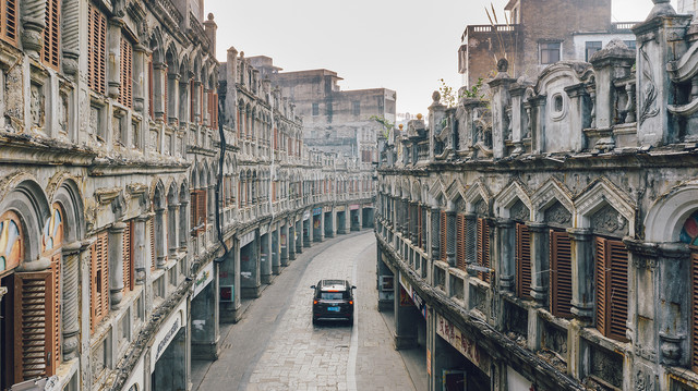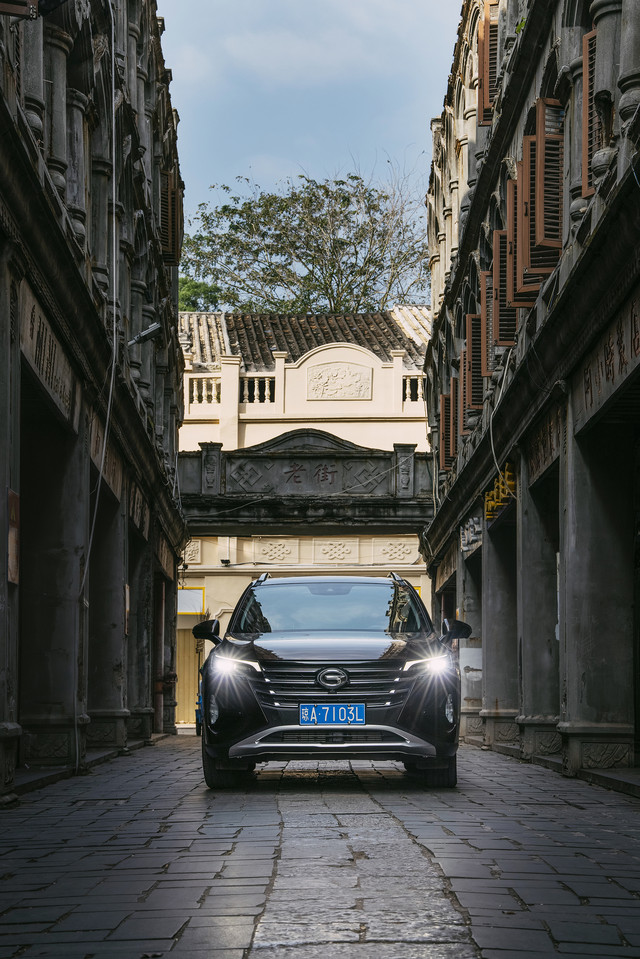 这反倒给我们一个好好感受老街的机会。将传祺GS4驶入老街,车轮碾压过石板的声音充满节奏感。两边的骑楼整齐而古朴,诉说着岁月的痕迹。