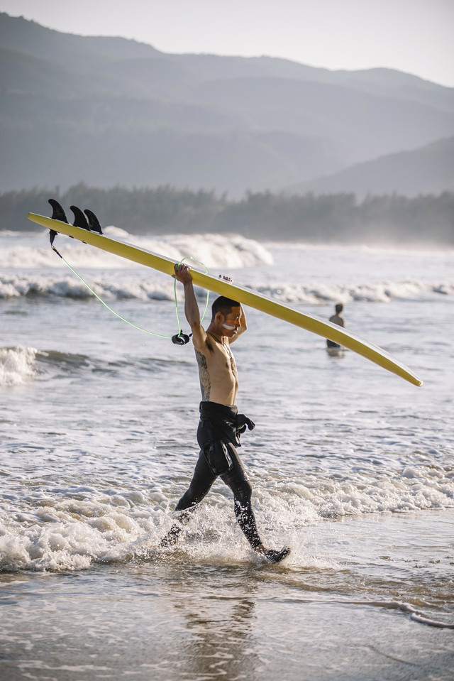 很多像金鱼和男朋友小平这样热爱冲浪的人,来到这里爱好当做生活,在阳光下与海浪共舞。