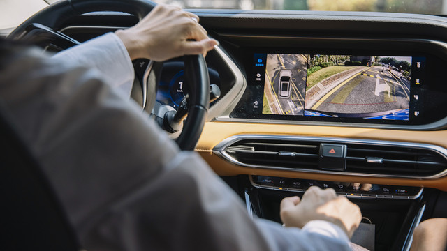 在小巷中行驶、倒车,现代科技能带来极大的方便,双12.3英寸高清大屏联动显示,不但有非常强的科技感,而且非常实用;将仪表盘切换成地图模式,不怕迷路,中控液晶屏100万像素无死角全景影像系统,在狭窄的小巷中可以清晰的看到车辆周围的情况,保证安全;