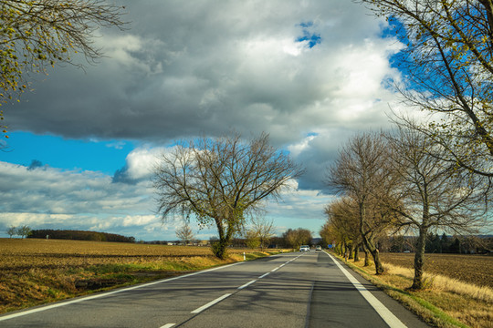 吃饱喝足继续前行,下一个世遗目的地,以文艺复兴式建筑特点而著称的利托米什尔城堡。一路基本是这种双车道的乡间小路。