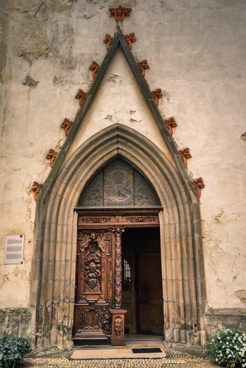 停好车,往城中心广场去,没走两步就发现一个硕大的四方庭院,好像是个政府机构,院落的一角有个相当古老的教堂,非常精美的木雕门,看说明牌也是座被保护的历史遗迹。