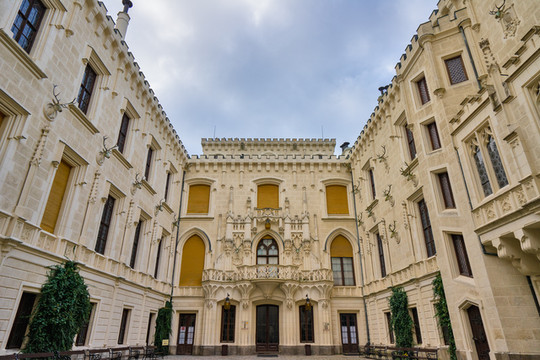 城堡外墙的釉雕装饰,用五彩拉毛粉饰绘成的“信封”砖, 整座城堡占地面积非常大,很像一座公园,古树参天、绿草茵茵,不过我更喜欢城堡的法式花园。城堡是波西米亚地区文艺复兴式建筑的杰出典范,很值得花点时间到此一游。