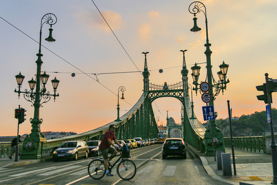 漫步在河岸边国境线上, 横跨多瑙河的玛利亚·瓦莱里娅大桥是一座连接匈牙利和斯洛伐克的桥,一河隔两城,一桥连两国。