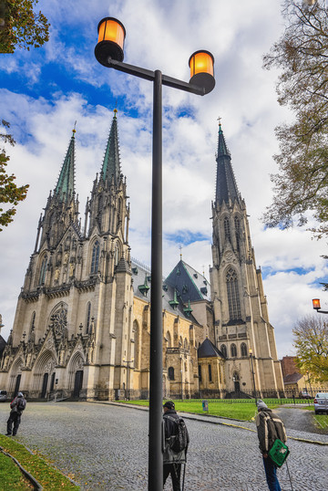 奥洛穆茨也有非常浓厚的宗教氛围,1063年这里成为教区,1777年升为总教区。曾经是天主教捷克两个总教区之一,圣瓦茨拉夫主教座堂是一座新哥特式主教教堂,建于1107年,城市最杰出的宗教建筑,哥特式建筑风格,其钟楼高100.65米,为捷克第四高建筑物。