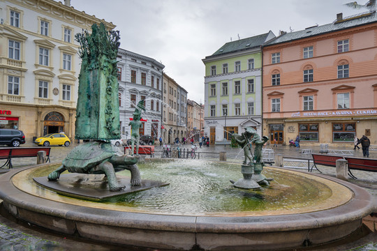 奥洛穆茨还有几座引以为傲的以希腊、罗马神话为主题的巴洛克式喷泉,2002年,一座配有奇异龟的现代喷泉,加入到这个行列里,让城市的神话变得更加鲜活灵动。