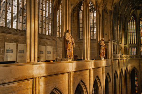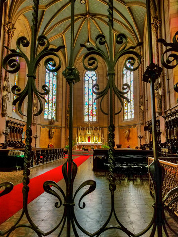 精美绝伦的大篇幅彩绘玻璃窗是这座教堂的一大亮点,它们并非常规性的用玻璃马赛克拼成,而是直接用油彩在玻璃上作画,因此色彩更加艳丽,线条更加细腻柔美,表达的内容也更加丰富生动。
