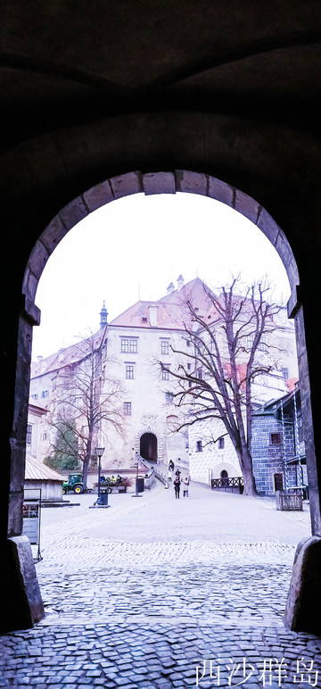 这里斜坡通向克鲁姆洛夫城堡的东门,进入第一庭院
