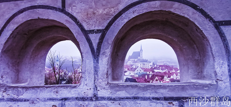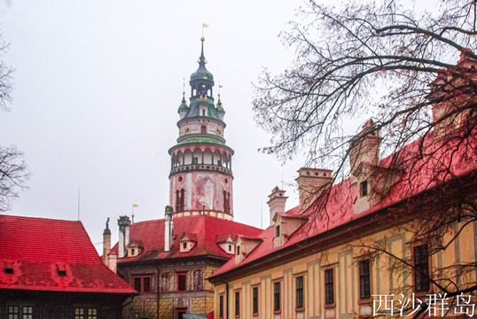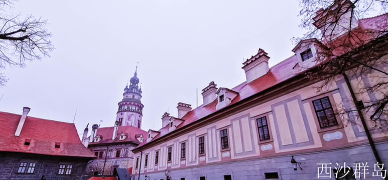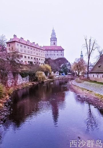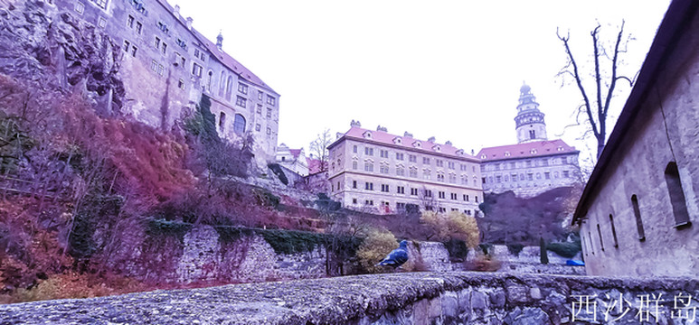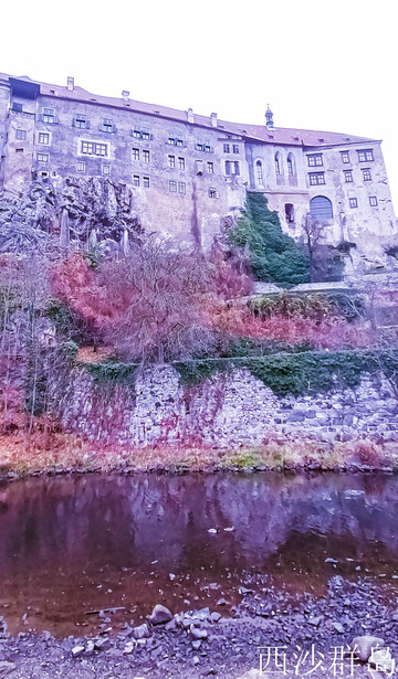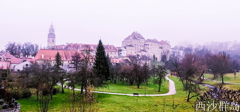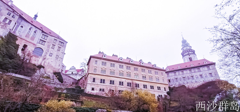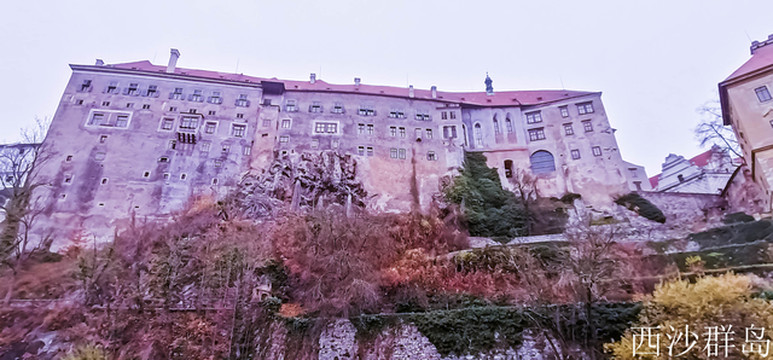 克鲁姆洛夫城堡由东而西横亘在海拔400多米的峭壁上