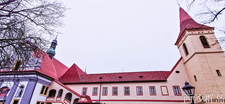 方济会修道院兴建于14世纪,整个修道院巴洛克式的外观 ,修道院屋后是个大庭院,红色的屋顶,周围有粗壮的树木,很安静。