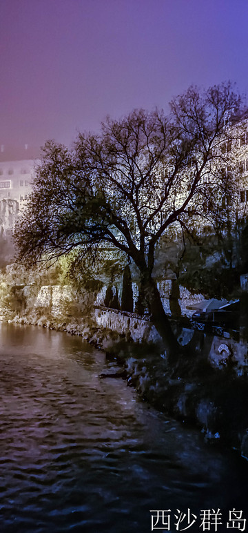 手机百度地图导航,提着行李摸黑沿沃尔瓦塔河边公里走10分钟到古城边的民宿。