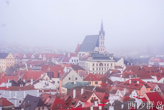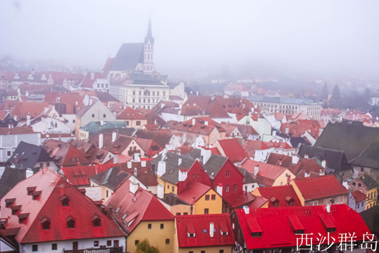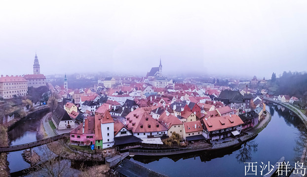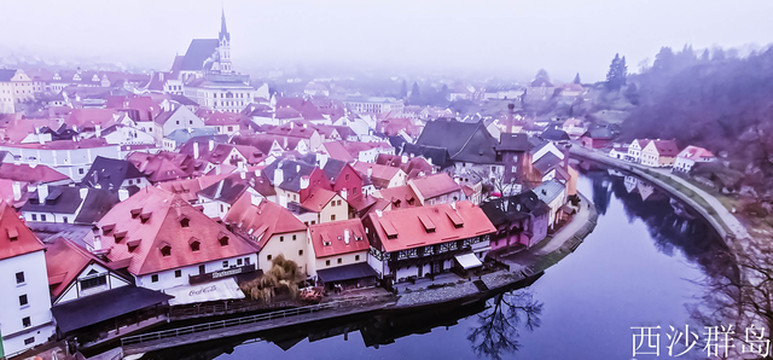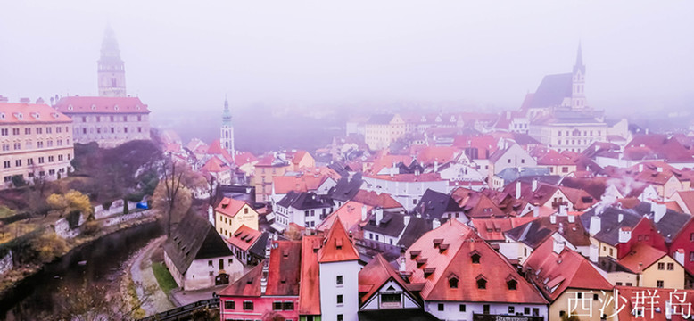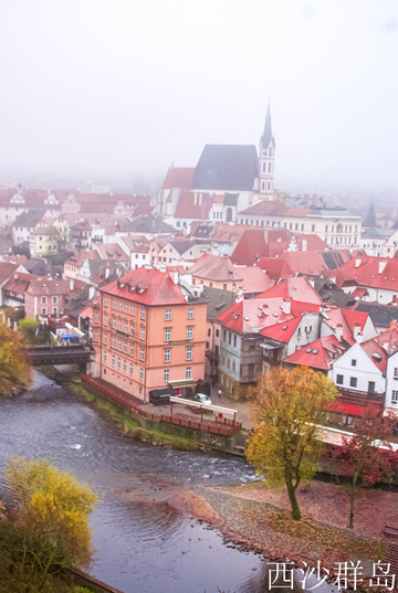 蜿蜒起伏的小河,河畔层层叠叠的红屋顶,偶尔几座教堂的绿圆顶加入进来,完整了你对波西米亚的所有想象。