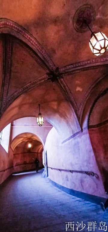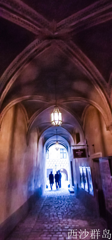 城堡地处小镇的制高点,有着优雅的拱形长廊,