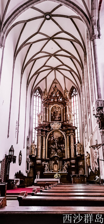 也许是向布拉格的圣维特主教座堂致敬,这里的天花板模仿了布拉格圣维特教堂的帕尔莱勒式拱顶。