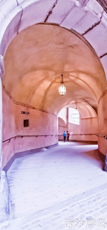城堡四、五庭院之间的廊桥,里外大有玄机