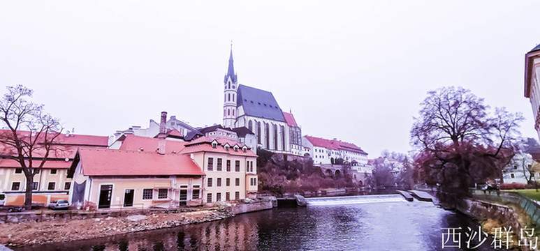 高高矮矮密密仄仄的红色房顶,圣维塔教堂静静的伫立在河畔,惹眼的青色尖顶