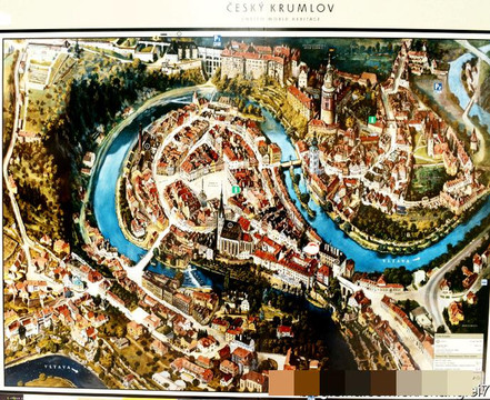 1万多居民的克鲁姆洛夫小镇,位于伏尔塔瓦河上游河谷。湍急的伏尔塔瓦河流到这里,河面开阔起来,河水缓缓而流,迎面矗立的城堡山使他改变流向,形成几个倒S形,