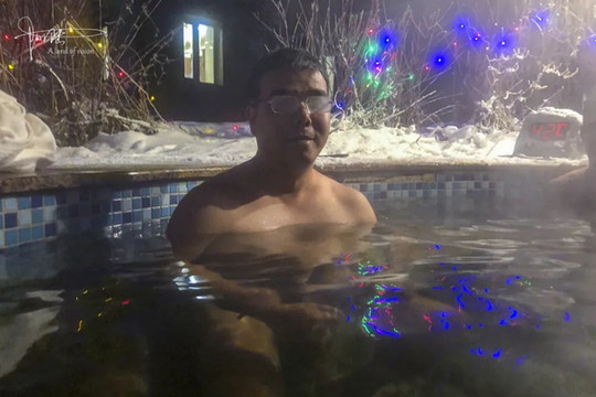 在冰雪覆盖的五大连池,泡温矿泉是种让人难忘的体验,你想试试吗