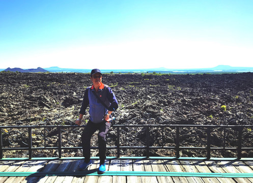 沿着木板观光小道前行,一望无际的奇形怪状的黑色石头,不断映入眼帘。