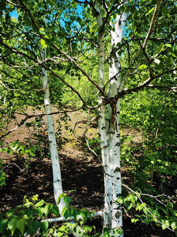 去黑龙山,走过一段熔岩台地,到达“桦林幽径”。这片白桦里就像一块飞地,在两座近距离火山喷发时能保存下来实属不易。