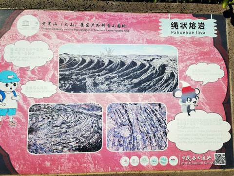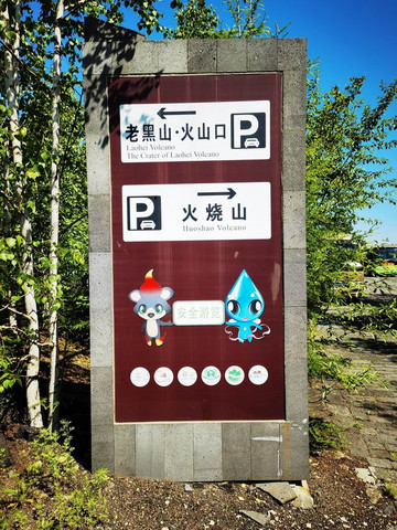 火山博览区是五大连池风景名胜区最为核心,最具价值的景区,也是保护力度最大的景区,包括石龙中部和东北部地区,主要由老黑山和火烧山两部分组成。图为老黑山和火烧山的路牌。