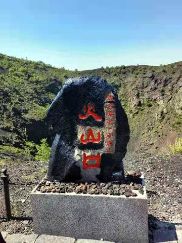黑龙山是我国典型火山之一,是14座火山中最高的一座。黑龙山海拔516米,山体多由黑色浮石组成。山的东、北两侧有盘山道可达山顶。图为山顶火山口石碑。