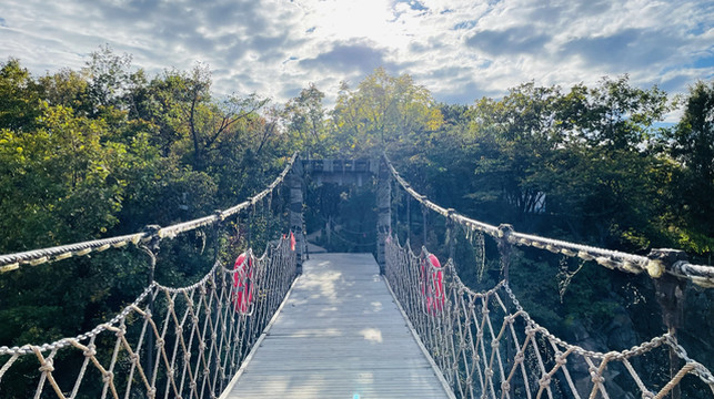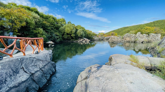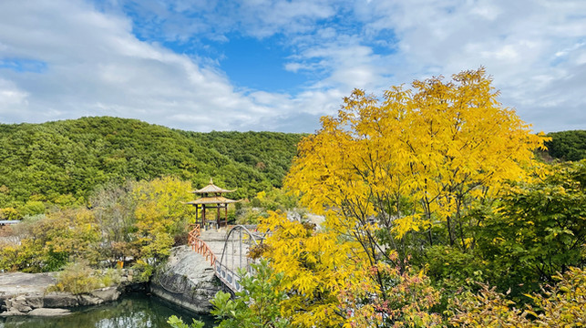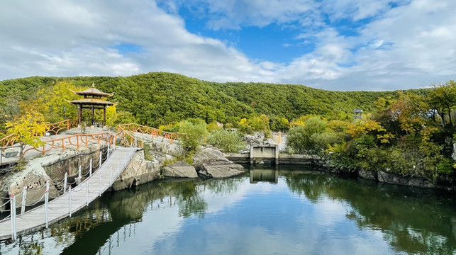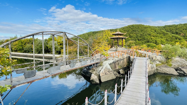 做完后开车去了镜泊湖,距离牡丹江90公里,1.5小时,镜泊湖景区需要核酸进不去,只能去了旁边的镜泊峡谷,正赶上放晴,也算是运气好了,这个地方门票60元,我看网上评价不太高,但可能我们去的时候放晴,景区里人又少的可怜,我们可以尽情玩耍拍照,所以觉得还不错,景色也挺好的,里面有一些朝鲜族特色的秋千,站着晃的。