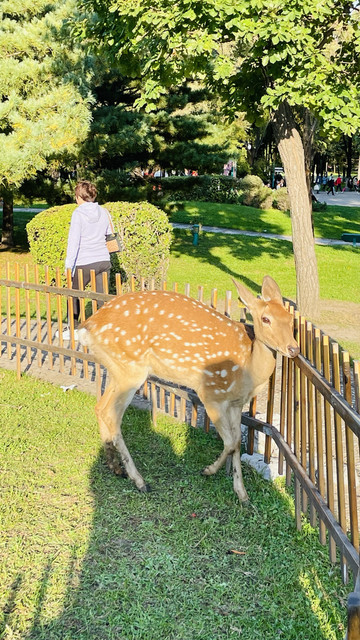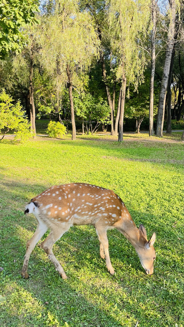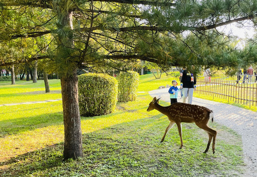 地铁二号线太阳岛站出来就是太阳岛1号门,太阳石广场,从这里进去🈶租双人自行车🚲60元/小时和四人自行车100/小时,300元押金,从太阳石广场进去到鹿苑走20分钟左右,小鹿好活泼,有时候还会跳栅栏越狱,不怕人