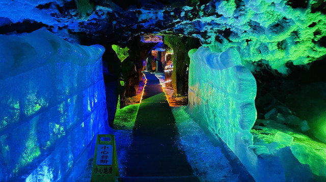 白龙洞地下冰河是50万年前🌋喷发的熔岩在流动过程中形成的地下洞穴,底下常年零下十度左右,门票15元/人,大概 500米长,门口🈶租大衣,但我们包邮地区人民根本不怕冷,下去的瞬间有一点冷,之后就还好了,里面走一圈也就20分钟。