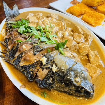从哈尔滨到五大连池景区,正常是4个小时车程,早上出发中午到达,dp上搜了一家排名靠前的餐馆,特色是鱼和豆腐,也是五大连池的特色,在五大连池万豪名苑商务酒店旁边的一条小街上,除了特产店就是餐馆,主打鲫鱼,鲶鱼和鲤鱼,都很大条,一条都四斤左右,菜量很大,两个人最多只能点两个菜,不然肯定吃不完。