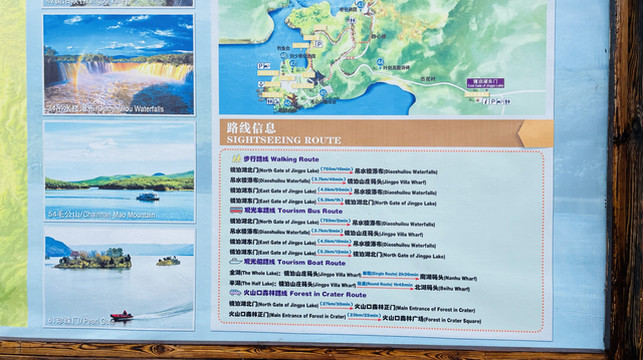 早上八点,第一批游览温泊,从靠近酒店那侧的入口进去景区,坐游船 20分钟,到达栈道口开始游览,一路上分别可以看到晶泊,碧泊和丽泊,天公不作美,🈶点阴,整个路线下来两个小时差不多,天晴的话,水底的水草更好看,搭配周围绿植和各种形状的火山熔岩石,总体风景不错。温泊进口和出口🈶两个地方,不走回头路,但每个口都能进出。