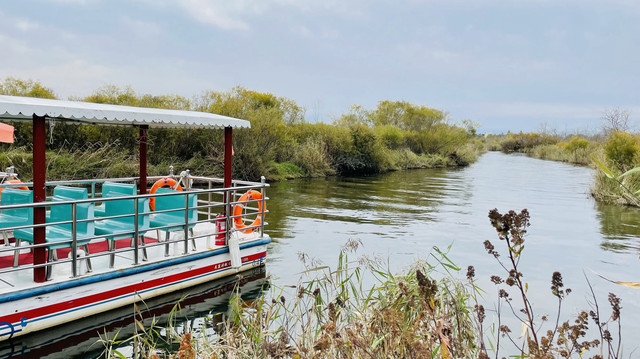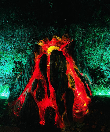 火焰山主要看喷气锥和喷气碟,坐游船游火山堰塞湖也是坐这个环保车上火焰山,在栈道尽头坐船🚤。