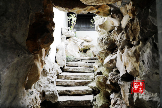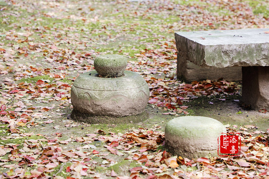时光在不经意间流走千年,疫情后尚未正式开放的庭院中空中一人,院落中有多处这样的垫脚石凳,着汉服的我一脚踩下去,恍似真的穿越了时光……