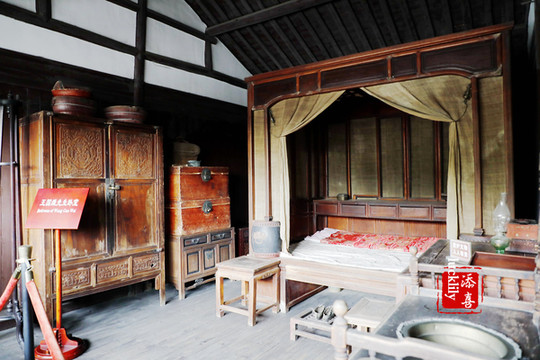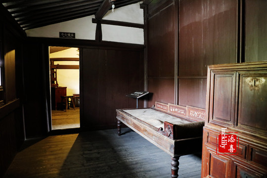 二层的三间卧房,一间是王国维父母的卧房,一间是王国维先生的卧房,还有一处则是位于两楼梯中间的通道房内的钱妈卧妈,钱妈是王家的仆人,其实在旧社会,仆人能有一个相对独立的空间已经是很被善待了。