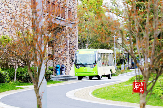 到达芳草青青房车营地的停车场之后,联系了营地,营地马上安排了观光车来接我们。