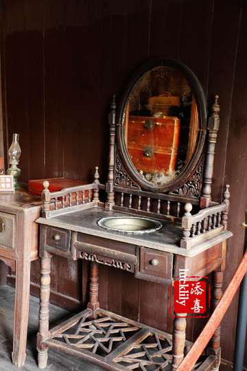 王国维父母的卧房还是显示着旧时富贵人家生活的讲究,床前的三寸金莲鞊、雕琢细巧的妆台,无一不让人可以联想到先生的母亲必是个精致的女人。