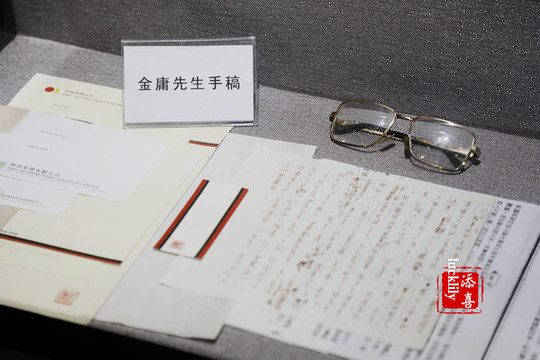 后厅是一个展厅,展出金庸先生珍贵的手稿、收藏品、创作书籍、刻章、宝剑等。
