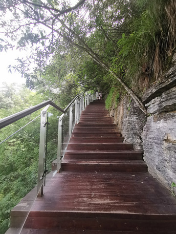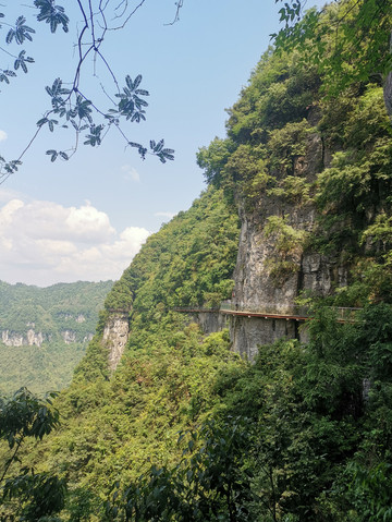 景区就是在山边修了一条栈道,沿着栈道看群山。栈道分两段,一段是木栈道、一段是玻璃栈道。