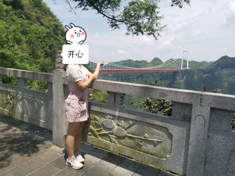 走过栈道,再爬上一段楼梯,矮寨大桥终于出现在眼前。