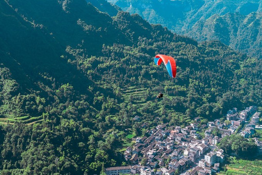 滑翔伞上,飞跃世界最美悬索桥,观湘川公路最险关卡13道急弯;