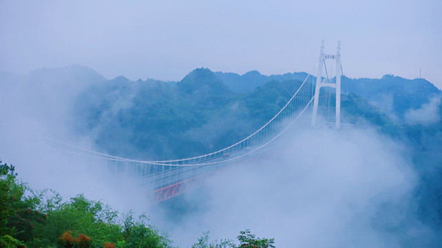 矮寨大桥位于 湖南湘西 州 吉首 市矮寨镇,是包茂高速(G65)跨越德夯大峡谷的一座特大型桥梁,2007年开工,历时五年完美竣工通车。