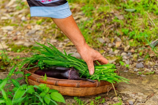 中午的时候我们就在寨子里吃的农家菜,和苗家大姐一起去地里摘茄子辣椒,割韭菜,还有嫩嫩的小黄瓜,可以买一些洗了下午走山路的时候带在路上当水果吃哟。
