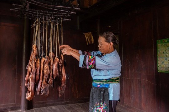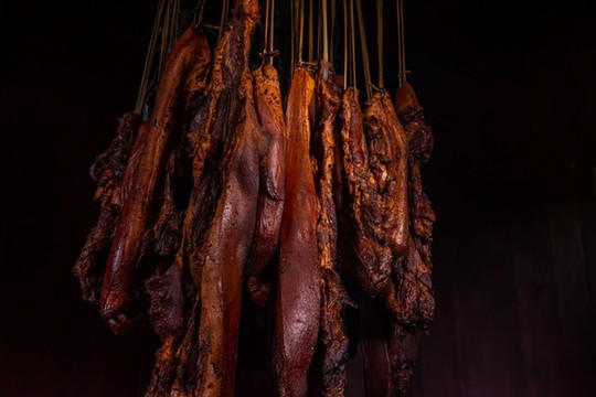 大姐家的老腊肉,都已经熏到位啦,平时也不用专门生火,做饭的时候那点柴火就能保证腊肉不受潮不生霉变质,而且腊肉的颜色很是漂亮。