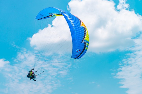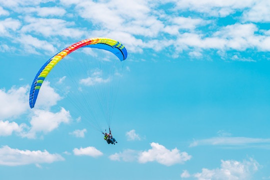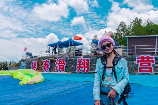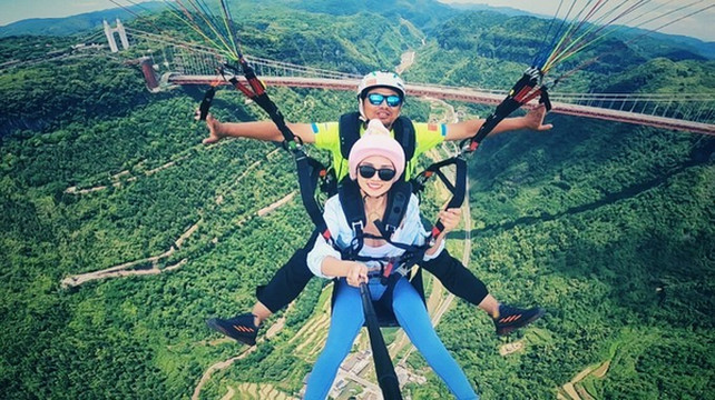 刚从观光电梯出来就看到有滑翔伞从天边慢悠悠的飘过来,在蓝天白云下非常吸睛,看着就非常想坐,好的呢,我们下午就安排!!